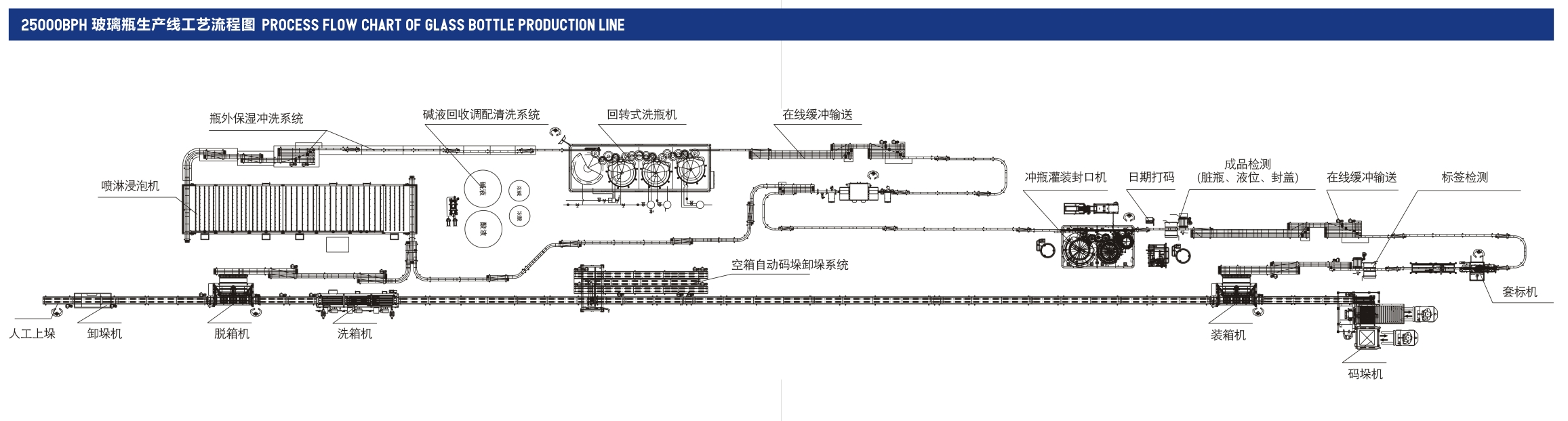 首页 - 产品展示 - 标准生产布局图 - 25000BPH 玻璃瓶生产线工艺流程图